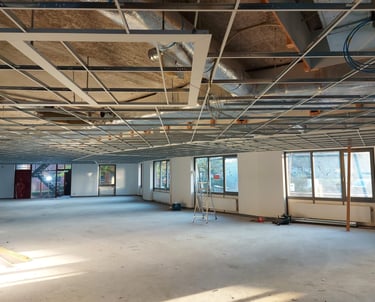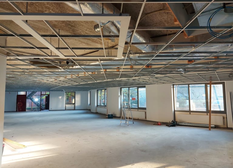 Professionele installatie van verlaagde plafonds voor een moderne uitstraling en betere geluidsisolatie.
